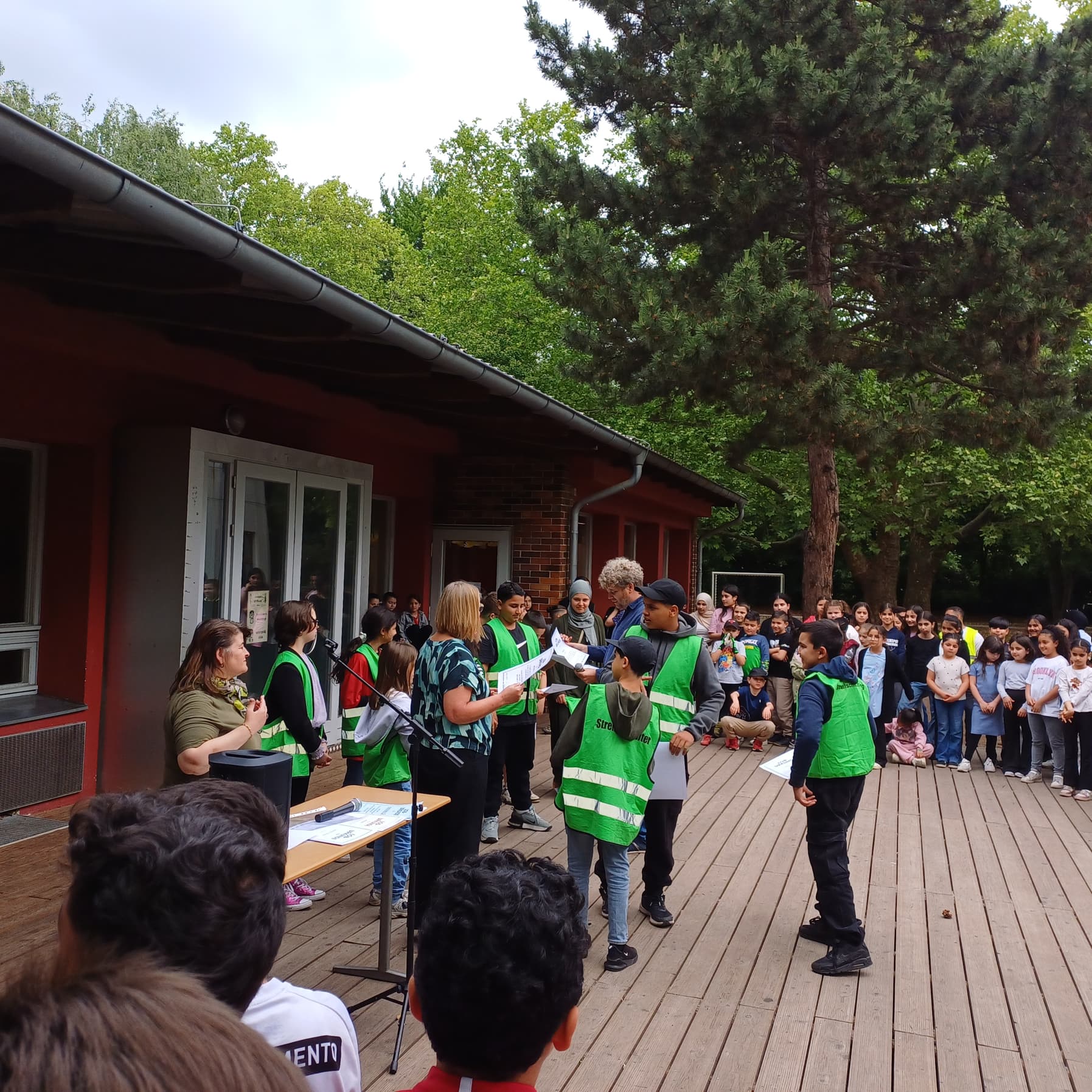 Inzwischen haben wir den zweiten Jahrgang ausgebildet und sehen eine hohe Bekanntheit und Akzeptanz der Streitschlichter bei den Kindern. Sie werden von vielen als Vorbilder angesehen. In den Hofpausen konnten wir die Präsenz ausbauen, da wir in Teams mit 3 Streitschlichtern aus allen fünften Klassen unterwegs sein können. Schon dadurch werden entstehende Streitigkeiten entstresst.